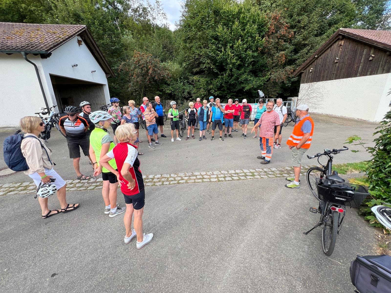25 Radler machten sich am 14.August 2024 auf den Weg zum Mobipark. Eberhard Lehmann hatte seine für den 18.September geplante Tour auf diesen sommerlichen Tag vorgezogen. Start war um 8:30 Uhr am Aldiparkplatz. Entlang der Rottum ging es zur Kläranlage Schönebürg. Ein Mitarbeiter erklärte Funktionsweise, Kapazität und Wirkungsmechanismen der Anlage, die das Abwasser von ca 13.000 Menschen so reinigt, dass es in die Rottum eingeleitet werden kann. Die Weiterfahrt ging immer auf Radwegen über Mietingen, Baustetten zum großen Laupheimer Baggersee. Dieser wird seit vielen Jahre als vielfältiges Wassersportfreizeit-Zentrum genutzt. Die obligatorische Einkehr erfolgte im Biergarten des Mobiparks. Zurück radelte die Gruppe über Baltringen mit Jacobus Kapelle, einem Blick auf die dortige Sonnenpark-Anlage rüber nach Heggbach mit Bussenblick. Durch den Heggbacher Wald erreichte man den Scheitelpunkt des Öchsles mit 598,13 m N.N. An dieser historischen Stelle oder in der Nähe gab es vor Jahren einen Indianerüberfall auf das Öchsle. Dies wussten Väter zu berichten, deren Söhne diesen Überfall im Auftrag eines bekannten Ochsenhauser Gastronomen ausgeführt hatten. Pünktlich vor Eintritt der großen Hitze waren die Radler zurück in Ochsenhausen. Fazit: Egal ob Radler oder Indianer – Hauptsache kein Plattfuß!