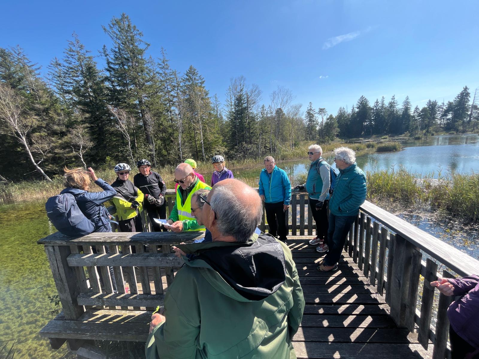 Weiter ging die Radtour über Haidgau zu den Haidgauer Quellseen bei der Riedschmiede. Sie sind eine geologische Rarität, da sie nicht aus einer Ach, sondern aus unterirdischen Quellen und aufsteigendem Wasser aus dem zwei Meter höhergelegenen und 2 Kilometer entfernten Rohrsee gespeist werden. Von einer Aussichtsplattform im Schilfgürtel hatten die Radler einen guten Überblick auf dieses Naturkleinod. Zurück ging die Fahrt über Bad Wurzach mit einem Zwischenstopp in der dortigen Eisdiele. Um 17:30 Uhr endete diese herbstliche Tour bei äußerst angenehmen Temperaturen und 60 gefahrenen Kilometern am Ausgangsort auf dem Parkplatz der Firma Wölfle. Fazit: Allen hat`s gefallen!